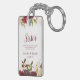 Mistletoe Manor Watercolor Lush Roses Design with Hand Painted Florals, Holly Berry Leaves, Pine Sprig Foliage, and Watercolor Paint Brush Strokes. Colourful Marsala, Wine Merlot Red, Burgundy, Ivory Cream, and Green. With Swirly Chic Typography Brush Script Fonts and Elegant Floral Top Border - Sister Heartfelt Quote Keepsake Keychain!