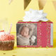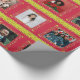Fun holiday photos framed in mistletoe and partridges. Christmas family photos striped wrapping gift paper in shades of rich red, with hints of green, red, lime green, yellow and white. Customise with five of your own special family or kids photos. and your own message, currently reads Merry Christmas from the Jackson Family. Uniquely designed by Sarah Trett.