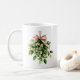 Artistic depiction of mistletoe tied with a delicate pink ribbon, perfect for the holiday season. The refined botanical design adds a touch of grace and romance to your favorite warm beverage.