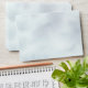 These wedding envelopes feature a rustic design with a marbled pale blue outside, a pre-printed return address on the back flap, and an alpine mountain scene inside the back flap of a mountainside covered with pine trees shrouded in mist or fog. Perfect for an outdoor or mountain themed wedding.