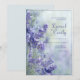 Set an ethereal and romantic tone for your celebration with this dreamy botanical layout. This design features a lush cluster of vibrant purple lavender on the left, showcasing delicate blossoms and soft green stems. The scene is anchored by a thin, dark indigo rectangular frame set against a beautiful, misty blue and white bokeh background that evokes a peaceful morning in a sun-drenched garden. The soft-focus effect and tranquil color palette provide a sophisticated, fine-art feel for your event details. This design is a stunning choice for an elegant spring wedding or a whimsical outdoor garden ceremony. Its calming lavender and misty blue palette makes it a perfect fit for a serene bridal shower, a refined engagement party, or an intimate vineyard reception. This layout pairs beautifully with themes like modern romantic, cottagecore, or fine-art botanical, and coordinates flawlessly with silver accents, slate blue linens, and natural floral arrangements.