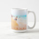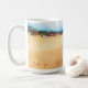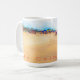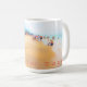 The sky fades into the sea as the mist drifts towards the beach. Viewed from a distance, people chat and play at the water’s edge, and others relax under colourful umbrellas. The horizon is lined with palm trees, and the sand is a lovely golden colour. This is the scene in the original photograph by ZoeSPEAK on this Mug. The text reads “My Calm Zone”, but is set for you to personalise, or delete if you prefer.