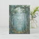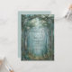 This piece invites your guests into a realm of quiet magic and deep serenity. An intricate, dark metallic archway with delicate filigree frames a breathtaking vista of a fog-shrouded woodland path. Slender, towering trees reach toward a hazy emerald sky, while soft white blossoms and lush green foliage create a multi-layered, painterly texture. The moody teal and grey color palette evokes a high-fantasy, romantic atmosphere that feels both ancient and timeless. As a wedding invitation, this design is a magnificent choice for a mystical outdoor ceremony, a gothic-inspired woodland union, or a grand fairytale celebration. it sets an unforgettable tone of wonder and enchantment, serving as a beautiful gateway to your special day.