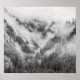Mountains in the mist. Jiuzhaigou Valley was recognise by UNESCO as a World Heritage Site and a World Biosphere Reserve - China (black and white)