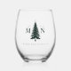 Raise a toast to your special day with this Misty Mountain Forest Green Pine Tree wedding stemless wine glass. Featuring a beautifully detailed pine tree monogram, this glass is perfect for nature-inspired, rustic, and outdoor wedding themes. The sleek stemless design adds a modern touch, while the elegant forest green motif brings a timeless, organic feel. Ideal as a wedding favour, bridal party gift, or keepsake for guests, personalise it with your names and wedding date for a unique and memorable touch.