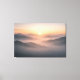 This serene canvas print captures a peaceful mountain landscape at sunrise, where soft golden light gently illuminates layered peaks emerging through morning mist. The calm atmosphere and subtle color transitions create a sense of depth, balance, and quiet strength, making this artwork a timeless addition to any interior.