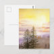 Misty mountains with pine trees postcard