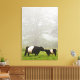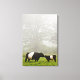 Misty scene of belted galloway cow mothering her canvas print