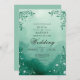 A serene watercolor wash in deep teal and mist green sets a tranquil mood, framed by delicate, ethereal foliage accents. This design evokes a sense of natural beauty and gentle romance for your special day.