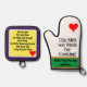 Home cooked family meals colours of vegetables food theme. This Mitt was made for Cooking. Typography quote saying on each item in black against white, and green and yellow backgrounds. Hand-painted red heart. Original Quote and Artwork Design by TamiraZDesigns.