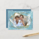 Mix Blue Pattern, Feathers & White Lace Announcement Postcard