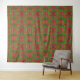 Vibrant geometric patterns intertwine in a kaleidoscopic array, featuring bold hues of red, green, and purple. Symmetrical shapes create a mesmerising and intricate design.