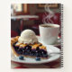 Cute notebook with an illustration of blueberry and mulberry pie with melting vanilla ice cream on top with a warm cup of coffee at a retro diner on the front and a piece of blueberry pie on the back.