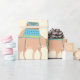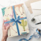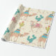 Printed wrapping paper with simple desert inspired design of mixed cactus and camel pattern.