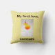 Attractive, pale yellow, Polyester, 16' x 16' throw pillow with an image of a cool, delish, colourful Tequila Sunrise cocktail and funny text.