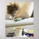 Mixed race boy reading book on sofa poster