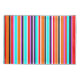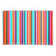 This pillowcase has a simple design of vertical stripes of varying thicknesses in red, orange, purple, black, light blue, and white.