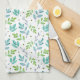 Mixed Teal, Green Watercolor Leaves Pattern Tea Towel