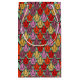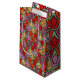 This gift bag has an art deco design of tulips from pentagons and trapezoids in orange, red, purple, gold, and green.