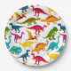 Mixture of Colourful Dinosaurs in Black Canvas Paper Plate