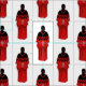 MMIW Kwe with Red Hand Pattern White Fabric by Native American Fashion Designer Ayasha Loya.
