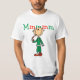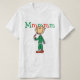 A Christmas holiday T-shirt design featuring a stick figure kid eating a candy cane and text of red and green that reads "Mmmmm".