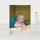 Photography, of a lovely little child eating cake, and a "one year old" birthday greeting, adorn this card