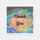 Are you hosting an appreciation party for customers, employees, or classroom teachers? These abstract appreciation napkins feature a bright mosaic pattern the captures the unique colouring and pattern of a polished abalone shell. The vibrant orange, teal, and purple coloured tiles gives these paper napkins a cosmic look as the colours arc and blend together. "Thank You" appears in the centre and can easily be customised to suit your needs.
