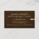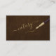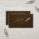 Modern typography professional certified notary consultant upscale business card with an elegant gold calligraphy script and pens over a dark brown leather look background for an exclusive luxury touch.