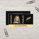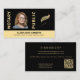 Elegant typography gold black feather logo notary public certified loan signing agent business card with custom photo and QR code to your website, price list, or social media link.