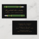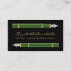 This elegant modern notary business card features a pair of green vintage fountain pen illustrations. Personalise it with your name in gold-coloured handwriting-style script on a black background, and add additional contact and commission information on the reverse.