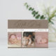 This mocha brown “Hello Baby” card features three baby photos with handwritten text and full birth details. The natural tone gives it a calm and elegant character. Perfect as a baby shower thank-you or keepsake card.