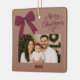 Mocha burgundy bow Christmas photo Ceramic Ornament