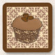 Mocha / Coffee Frosted Cupcake, Lace Background Coaster
