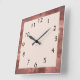 Large square acrylic clock with a shiny glowing mocha copper frame and a light blush/cream background. Black numbering matches the hands. Click on the "Customise It!" button to change the background colour, add font, size, and position as needed. Artwork and design by Karlajkitty