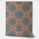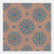 Teal blue geometric mandala flowers on texture mocha mousse background.