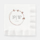 Elegant paper napkins for your wedding event that features a trendy mocha brown colour, simple heart wreath with the bride and groom's initials and wedding date in stylised, grey lettering. Edit and replace initials and date with your own. Select your paper napkin colour.