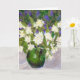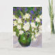 A birthday card with an original oil pastel painting of a green jug filled with fragrant Mock Orange Blossom and blue Ceanothus.