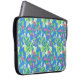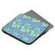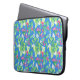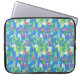 A pretty sleeve for a large laptop, with a pattern of creamy white Mock Orange Blossom and bright pink Weigelia on a sky blue background, from a handpainted watercolour design by Judy Adamson.
