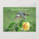 On a Postcard is a photograph of a young Mockingbird trying to stand on a Hibiscus Bush. Photographed in SW Florida.