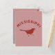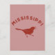 These postcards feature a simple style illustration of a mockingbird, the state bird of Mississippi, with Mississippi spelled out above. The dark maroon illustration and text has a distressed style for a retro, vintage look and is set against a faded red background.