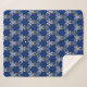 Cosy warm Sherpa blanket for the winter season with a mod pattern of giant snowflakes in blues and greys.