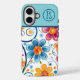 Mod Blue, Pink, Yellow Flowers Monogrammed Case-Mate iPhone Case