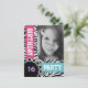 A very modern and stylish black and white zebra pattern design that works well with black and white photographs of your daughter celebrating her sweet sixteenth birthday! High contrast or selective colour photos would also look sharp! This design features bold hot pink and electric blue colour bands, large block letter text and wild zebra print pattern to draw attention to the most important part of the page - your birthday girl! Invite all of her girl friends to a special sweet 16 celebration or any tween or teen birthday party with this pretty feminine, high fashion and trendy card. . It has several easy to customise text areas on the reverse side for your birthday girl's name and all sleepover or celebration party details, as well as rsvp contact information. Click the handy customise button to resize/reposition your photo if necessary and ensure that it covers the entire photo area.