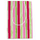 Bright red, pink and lime green stripes decorate this festive gift bag. This bright gift bag is great for kids, teens, adults, Christmas, holidays, a celebration, birthday, etc...The design is from original art.