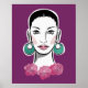 A stylish model wearing oversized retro earrings give a bold look to this girly design.