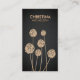 Elegant vertical card features gold mod floral illustration on black textured background image. Versatile layout works well for business or personal use. © 1201AM DESIGNS