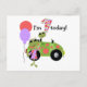 Mod Frogs 1st Birthday design featuring lots of polka dots, ballons, a cool green car, and green frogs!