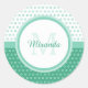 Mod Green and White Polka Dots Monogram With Name Classic Round Sticker