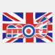 Retro look mod logo design featuring a mod target and union jack in the shape of the letters MOD in red white and blue